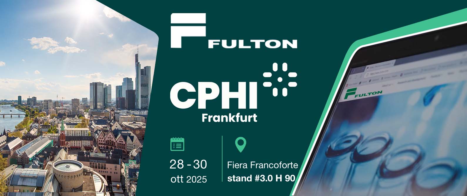 Settembre 29, 2025Fulton sarà presente al prossimo CPHI Worldwide 2025 che si svolgerà a Francoforte dal 28 al 30 ottobre. Puoi venire a trovarci allo stand stand #3.0 H90. Per prenotare un incontro inoltra una e-mail a fulton@fulton.it.